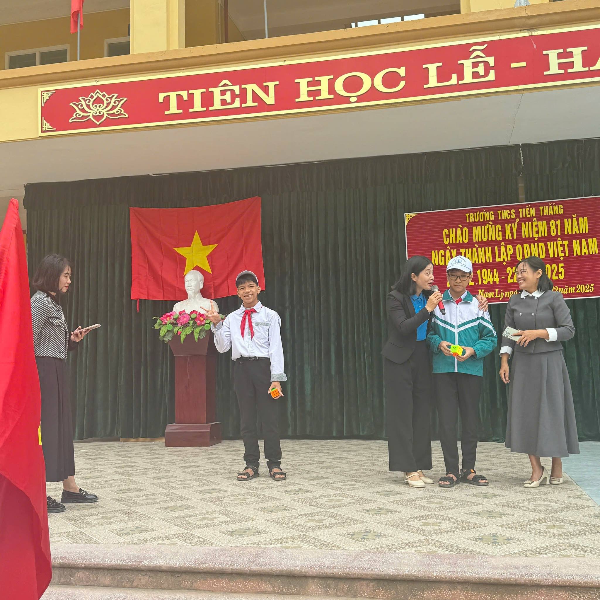 Hòa chung không khí Kỷ niệm Ngày thành lập Quân đội Nhân dân Việt Nam 22/12, tiết sinh hoạt dưới cờ tuần này. Thầy và trò Trường THCS Tiến Thắng