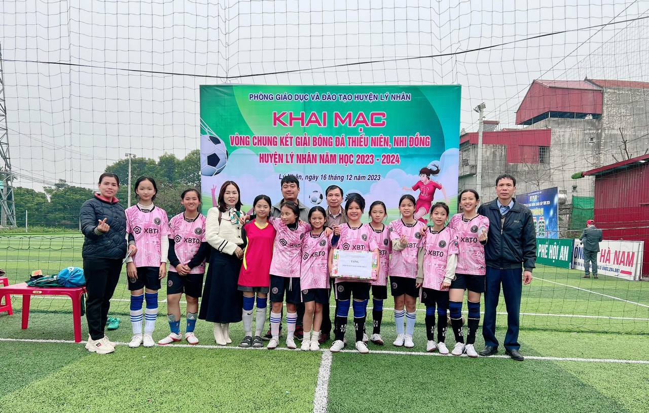 Ông Ngô Sỹ Khánh – Phó trưởng phòng GD-ĐT trao giải nhất cho đội bóng